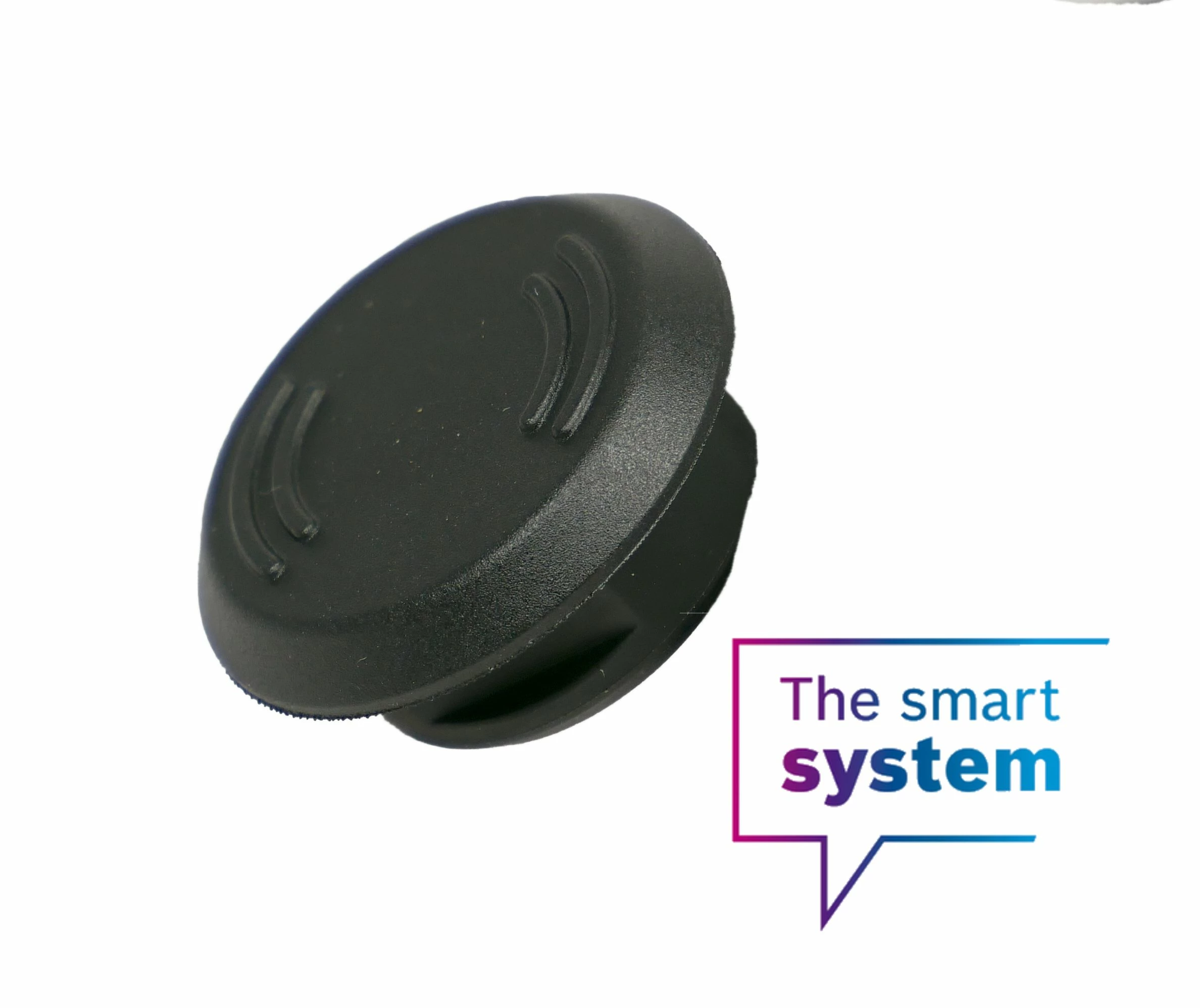 Obturateur Ă placer dans le logement de la batterie Bosch PowerTube 750 Wh Smart System ne disposant pas de serrure. Ce bouchon empĂŞche la saletĂ© ou l’humiditĂ© de pĂ©nĂ©trer dans le compartiment de la batterie.