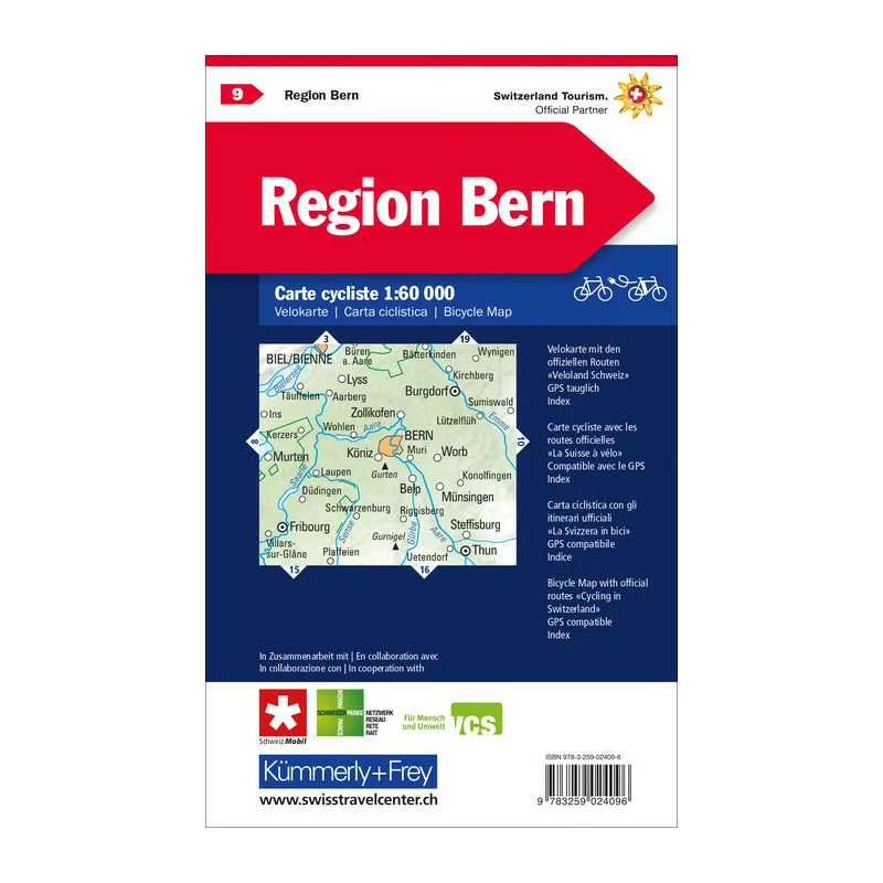 Très bonne carte détaillée au 1:60’000 avec itinéraires recommandés pour les vélos.