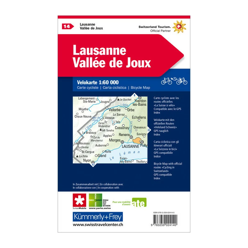 Très bonne carte détaillée au 1:60’000 avec itinéraires recommandés pour les vélos.