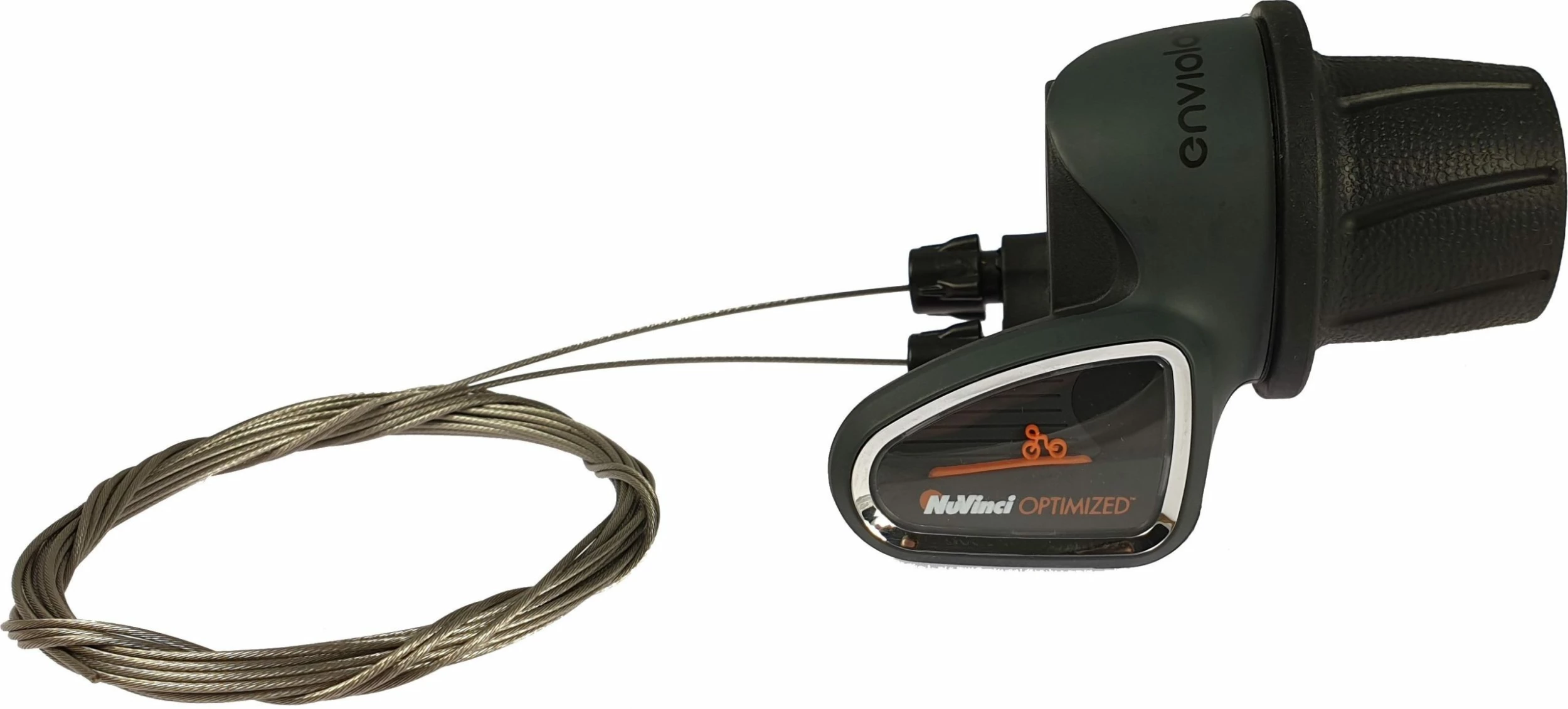 Poignée tournante originale Enviolo TR pour la commande de votre moyeu à vitesses intégrées NuVinci/ Enviolo. Grâce à son écran, vous avez toujours une vue d’ensemble sur la vitesse utilisée. Ce sélecteur de vitesse peut être utilisé avec toutes les interfaces manuelles pour moyeux Enviolo. Il fonctionne aussi bien avec les interfaces “One Turn” que “Multi Turn”. Pour l’utilisation de ce type de transmission sur des vélos de transport, la poignée tournante est également disponible avec un câble Bowden de 3300 mm.
