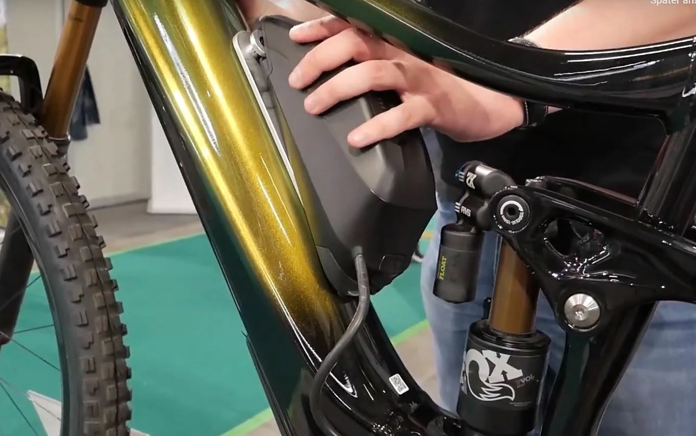 Cette plaque de montage Giant sert à fixer le Giant Range Extender (batterie additionnelle de 250 Wh) sur votre tube diagonal. La plaque de montage se visse les trous de fixations prévus sur le tube diagonal des modèles compatibles (le porte-bidon doit être retiré préalablement). La batterie additionnelle se clipse ensuite simplement sur la plaque de montage (voir exemple sur la photo) et se branche dans la prise de charge du vélo électrique. Un porte-bidon peut être monté sur la plaque de montage lorsque vous n’utilisez pas la batterie additionnelle.