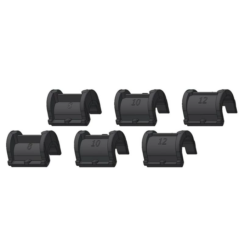 Contient 2 pièces pour tube 8 mm, 2 pièces pour tube 10 mm et 2 pièces pour tube 12 mm