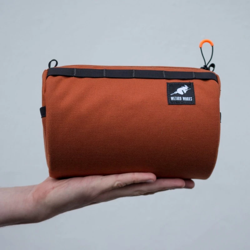Charmante sacoche guidon de la marque anglaise Wizard Works. Se fixe rapidement sur le guidon ou à la selle grâce à des Voilé Straps Nano fourni avec. Suffisamment grande pour ranger une couche supplémentaire, des outils de réparation, des paires de chaussettes chaudes ou encore une boite de pesto de secours en voyage!