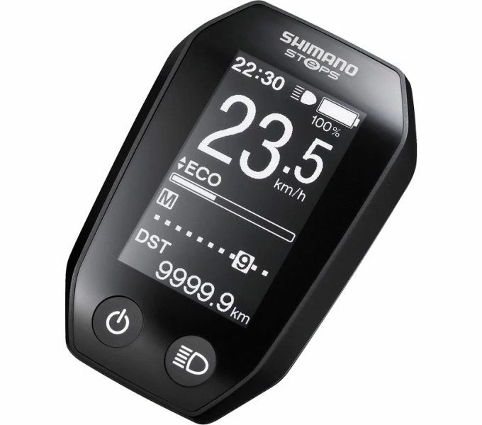 Avec seulement deux touches (marche /arrêt et éclairage on/off) cet ordinateur de bord Shimano Steps SC-E6010 est très simple d’utilisation.