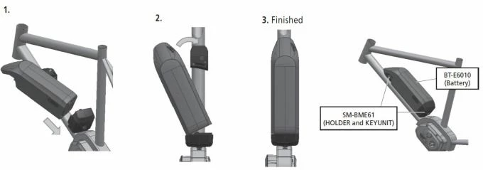 | Contenu de la livraison | 1 x Support Shimano SM-BME61 pour batterie de cadre BT-E6010 sans batterie et sans serrure |