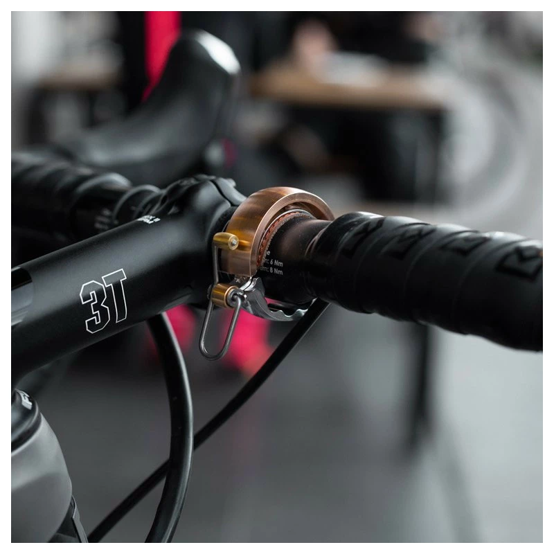 Sonnette Knog design et dont la partie supérieur est en métal pour un timbre clair et bruyant.