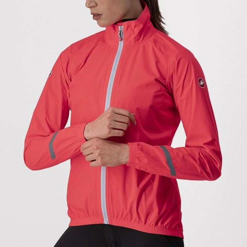 Comme son nom l’indique, nous avons voulu crĂ©er la veste de pluie d’urgence simple et idĂ©ale. Nous l’avons rendue complètement impermĂ©able et compacte, et, comme vous pouvez l’attendre de Castelli, nous lui avons Ă©galement donnĂ© un ajustement incroyable sur le vĂ©lo, tout en restant assez spacieux pour s’adapter Ă un Gabba. Elle possède tous les attributs d’une veste de pluie performante, avec une fermeture Ă©clair impermĂ©able, une longue queue, des manches longues et des fermetures de poignets qui peuvent aller sur des gants, mais nous savions que vous ne voudriez pas vous ruiner avec elle, donc le seul vrai compromis par rapport Ă nos offres haut de gamme est la respirabilitĂ©. Nous avons conservĂ© un style sobre et ajoutĂ© une couleur vive, le rose brillant, pour que vous puissiez facilement l’utiliser comme veste de transport et rester Ă©lĂ©gant lorsque vous arrivez au bureau. Si vous comptez la porter par-dessus une tenue de bureau, il est prĂ©fĂ©rable de prendre une taille au-dessus.